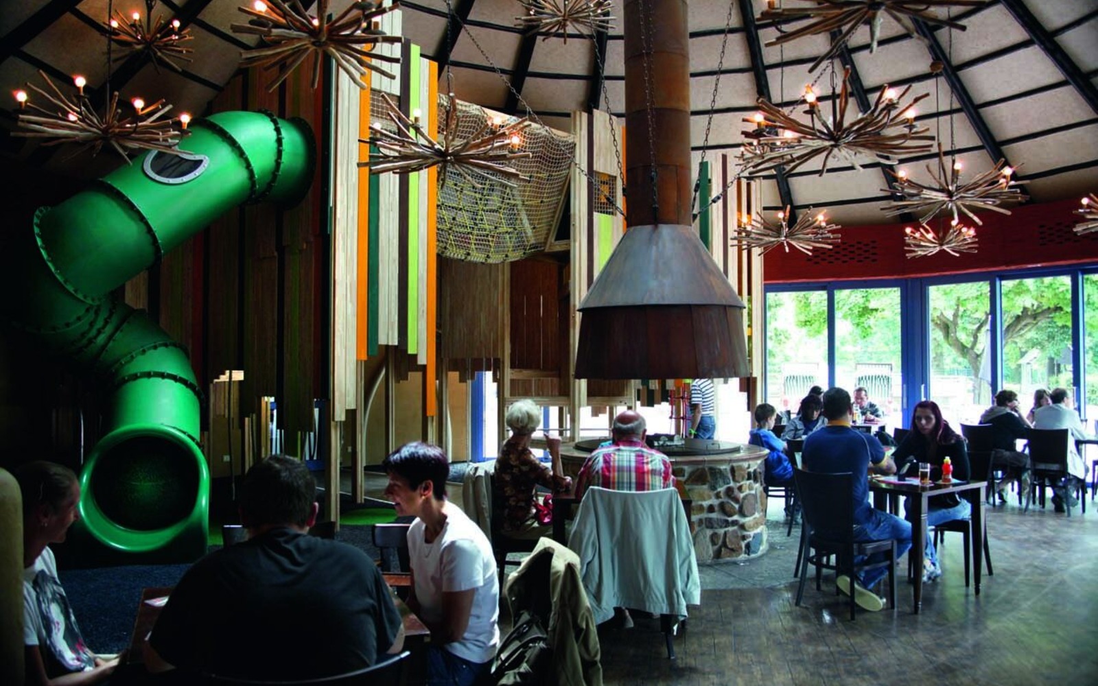 Das familienfreundliche Restaurant Sambesi verwöhnt die Gäste von Zoo und Schloss Hoyerswerda mit deftigen Mahlzeiten und besticht mit seinem einzigartigen afrikanischen Ambiente. Die große Rutsche und der Kletterwald im Inneren laden Kinder zum Toben und Spielen ein, während die Erwachsenen die Sonne auf der schönen Caféterrasse genießen. 140 Sitzplätze im Innen- und Außenbereich bieten einen Platz zum Erholen und Feiern.
