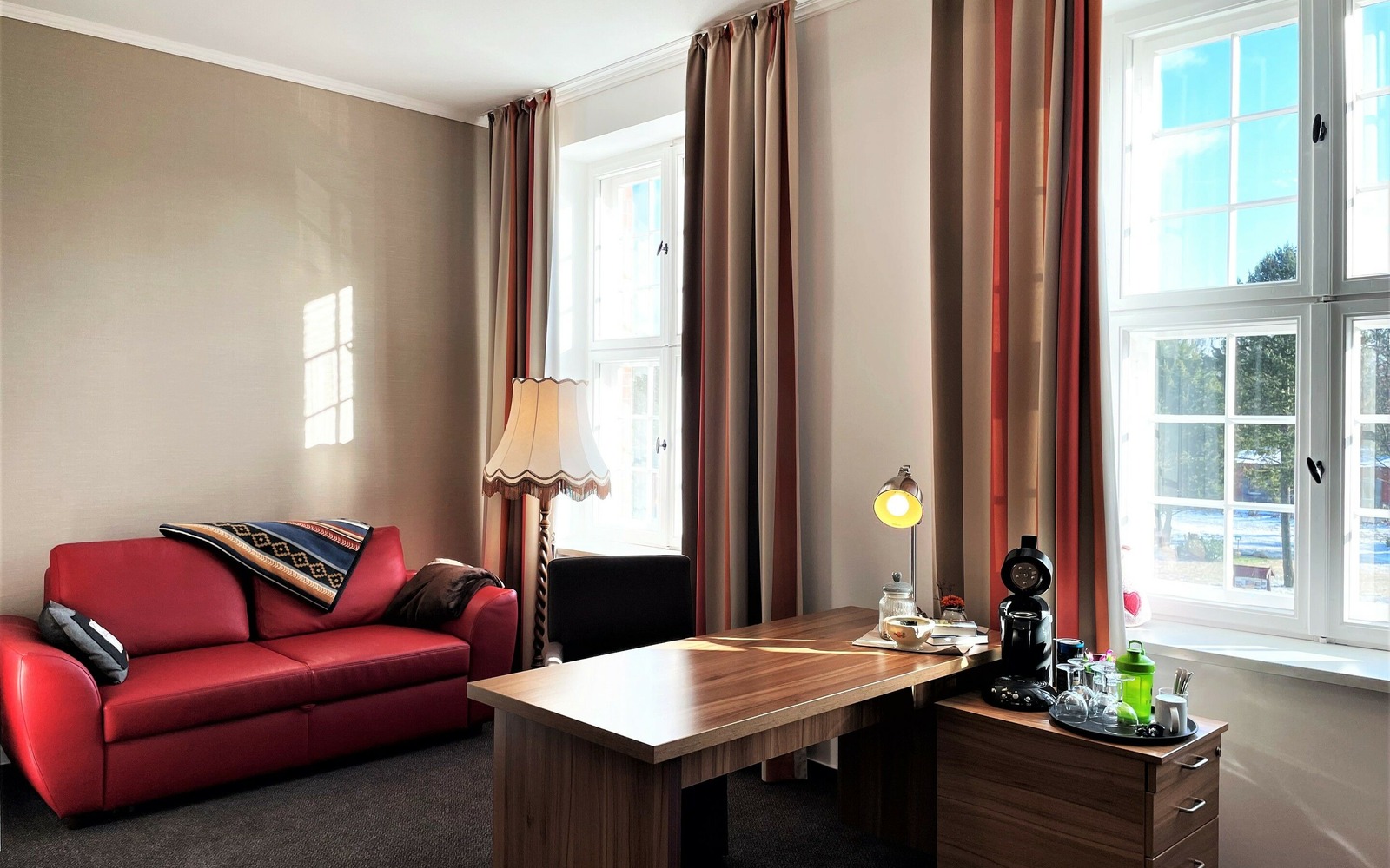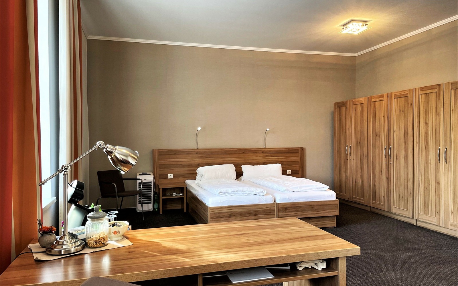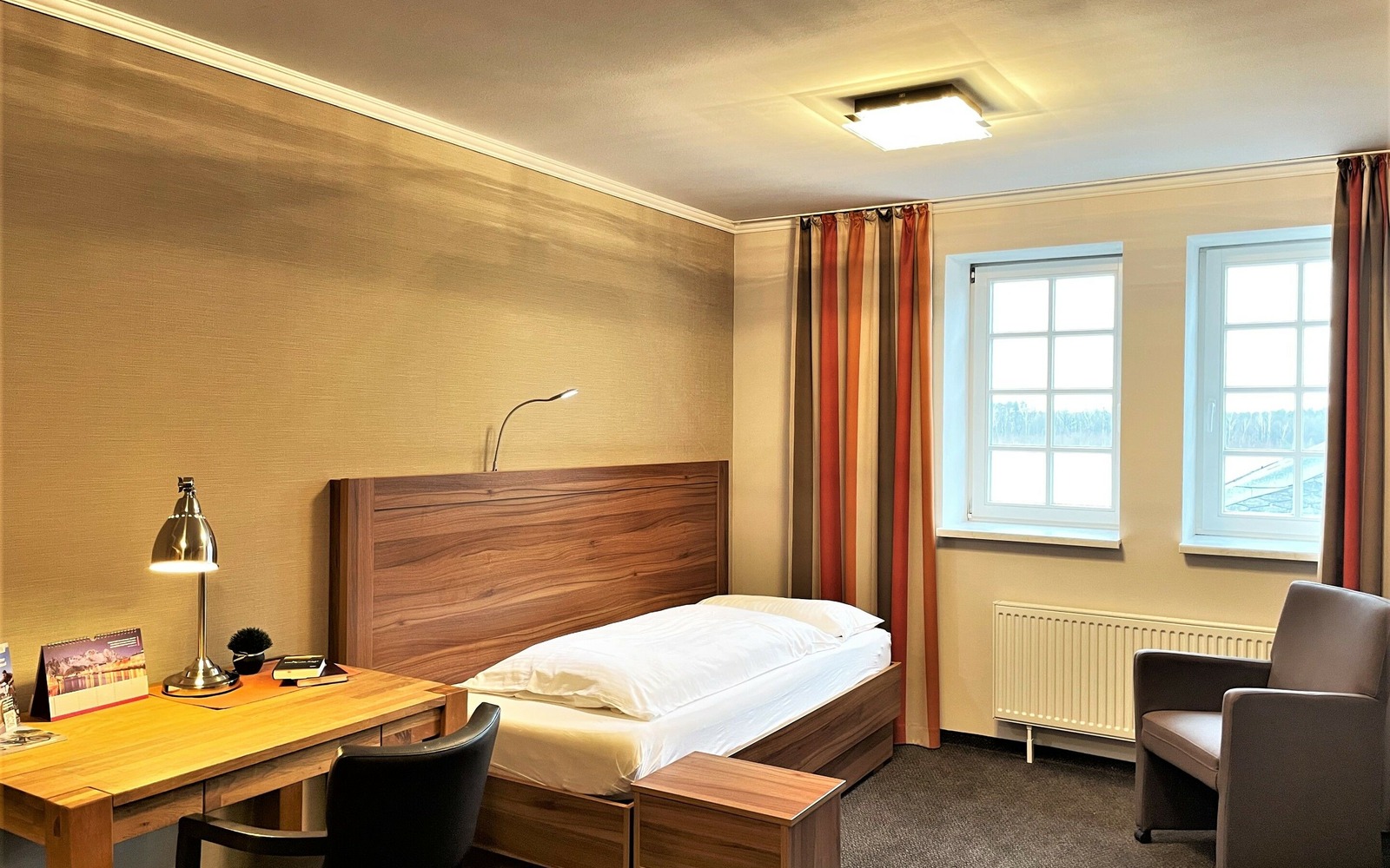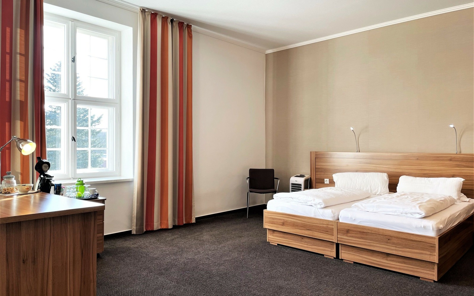 Eine Mischung aus denkmalgeschützten Industrieflair und moderner Ausstattung macht den Aufenthalt im IBS zu etwas Besonderem. Auf 3 Etagen erstrecken sich die Hotelzimmer, Speise-, Seminar- und Aufenthaltsräume. Der große Garten lädt zum Verweilen ein. Kostenloses WLAN, Parkplätze, Spielgeräte für Kinder und ein abschließbarer Fahrradraum sind selbstverständlich. Neben dem reichhaltigen Frühstück stehen Kalt- und Heißgetränke zur Selbstbedienung ganztägig zur Verfügung. Die ruhige, aber zentrale Lage sowie das einzigartige Ambiente des Kulturdenkmals sind bei unseren Gästen besonders beliebt. Es gibt Einzel-, Doppel- und Mehrbettzimmer. In den Mehrbettzimmern steht zusätzliche eine Couch, die als Aufbettungsmöglichkeit dient. Alle Zimmer sind mit Kleiderschrank, Garderobe und einem Schreibtisch ausgestattet. Die Bäder sind in modernen Design gehalten und verfügen über ein Waschbecken mit Spiegel, WC sowie einer begehbaren Dusche.