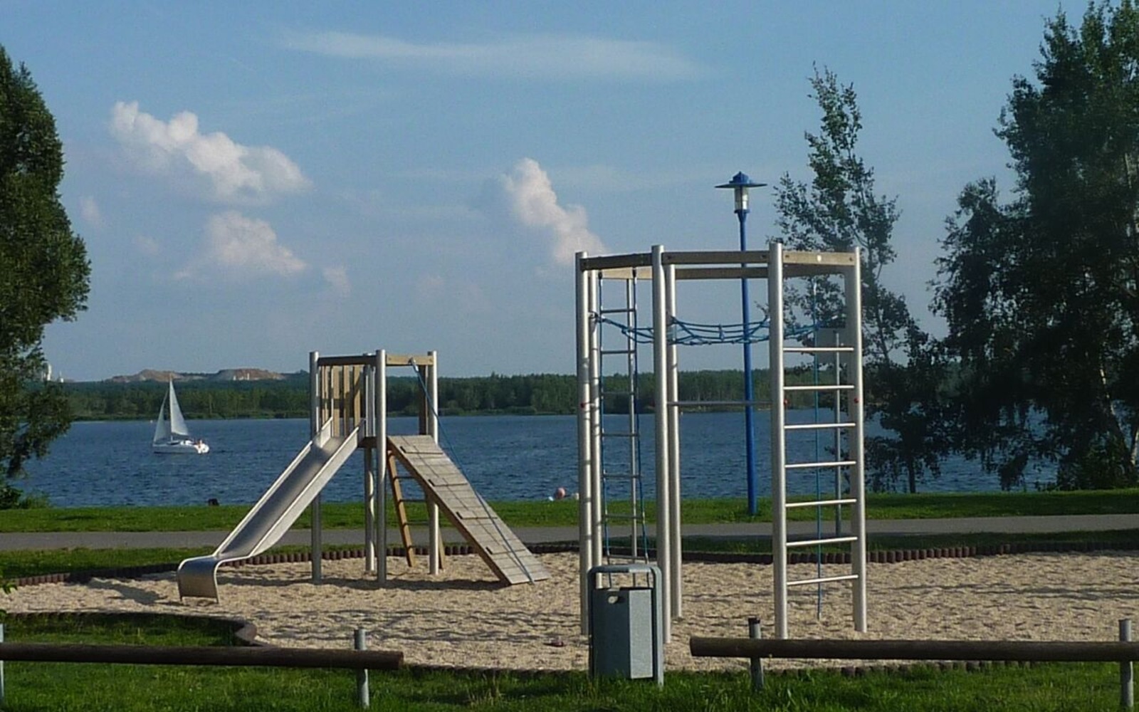 Freizeitangebote vor Ort: Liegewiese, Badestelle, Surferstrand, Wasserrutsche, Spielplatz, Beachvolleyballplatz, Grillplatz, Imbiss, Restaurant