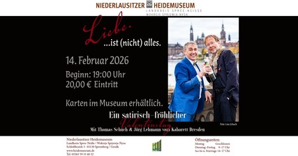 Unter dem Motto "Liebe ist (nicht) alles" nehmen die beiden Kabarettisten Thomas Schuch und Jörg Lehmann die Zuschauerinnen und Zuschauer mit auf eine humorvolle Entdeckungsreise in die Welt der Liebe – oder besser gesagt, in das, was wir dafürhalten. Jedes Jahr am 14. Februar erleben wir das Phänomen der "Valentinstagsverliebtheit", das den Blumenhändlern zum zweiten Weihnachtsgeschäft verhilft. Doch was bleibt nach diesem Tag der Zweisamkeit? Wird aus der einen Nacht ein immerwährender Traum, oder kehrt der Alltag schneller zurück, als man "Herzchen" sagen kann? Mit ihrem scharfsinnigen Humor, ihrem Spielwitz und einer gehörigen Portion Ironie nehmen Schuch und Lehmann nicht nur die vielen Facetten der Liebe auf die Schippe, sondern lassen auch die großen und kleinen Missverständnisse rund um die zwischenmenschlichen Beziehungen nicht aus.