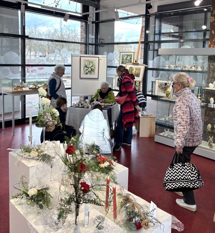 Besucherinnen und Besucher haben an diesem Nachmittag die Möglichkeit, gleich drei langjährige Ausstellerinnen und Aussteller der Osterausstellungen bei ihrer kunsthandwerklichen Arbeit zu erleben. Inge und Manfred Ewersbach sowie Monika Krüger geben Einblicke in ihre jeweiligen Techniken, erläutern ihre Arbeitsweisen und stehen für Gespräche zur Verfügung.