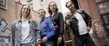 Vier Schauspieler*innen schlüpfen in viele verschiedene Rollen. Sie erzählen keine trockene Geschichte, sondern zeigen kleine Szenen aus dem Alltag: Gespräche, Entscheidungen, Zweifel, Freude. Man schaut Menschen dabei zu, wie sie versuchen, sich in einer neuen Welt zurechtzufinden. So wird Geschichte lebendig und verständlich – auch für Menschen, die 1990 noch sehr jung waren oder noch gar nicht lebten.