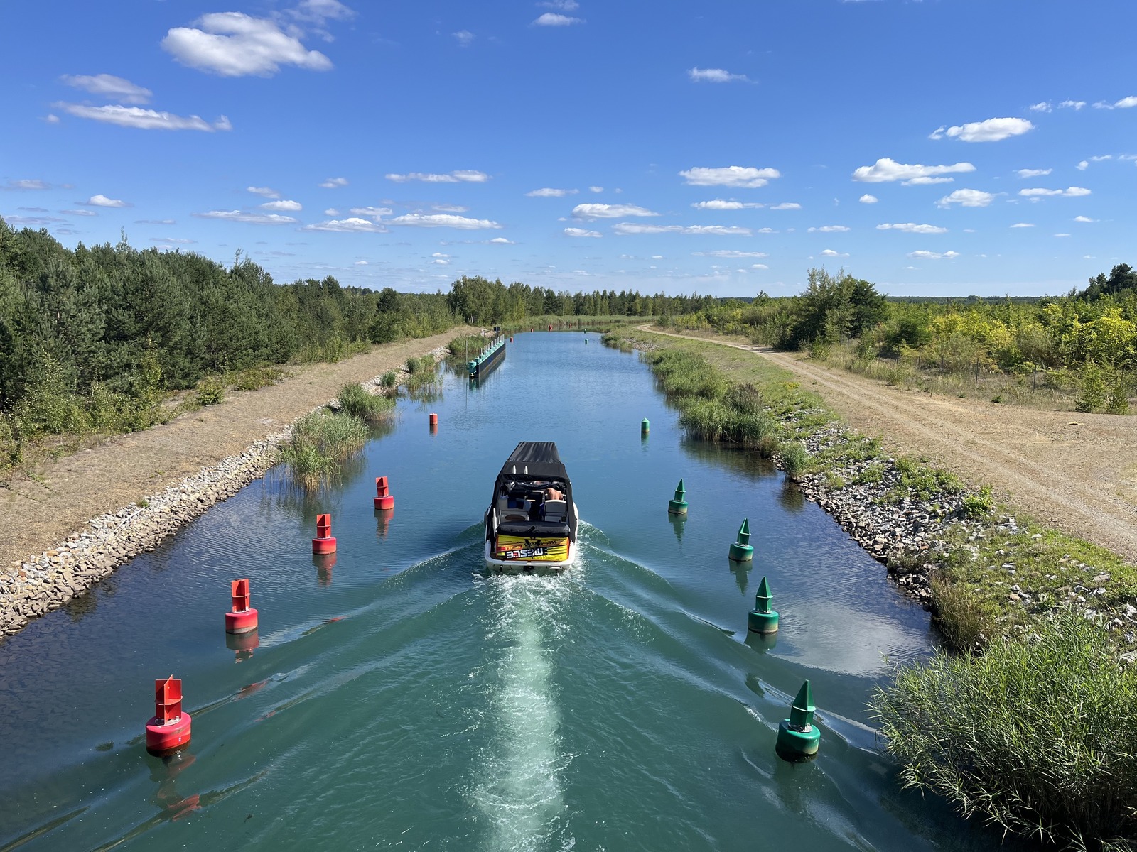Die Einfahrt erfolgt zur halben Stunde aus Richtung Westen vom Geierswalder See und zur vollen Stunde aus Richtung Osten vom Partwitzer See, jeweils bis längstens 10 Minuten danach.