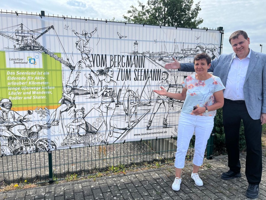 Die Sichtbarkeit der Marke Lausitzer Seenland vor Ort zu stärken, ist Ziel einer neuen Kooperation zwischen dem Wasserverband Lausitz (WAL) und dem Tourismusverband Lausitzer Seenland e. V. Im Rahmen der Zusammenarbeit wurden illustrierte Werbebanner mit dem Leitmotiv „Vom Bergmann zum Seemann“ an Zäunen von WAL-Anlagen an besonders touristisch frequentierten Standorten im Verbandsgebiet angebracht.