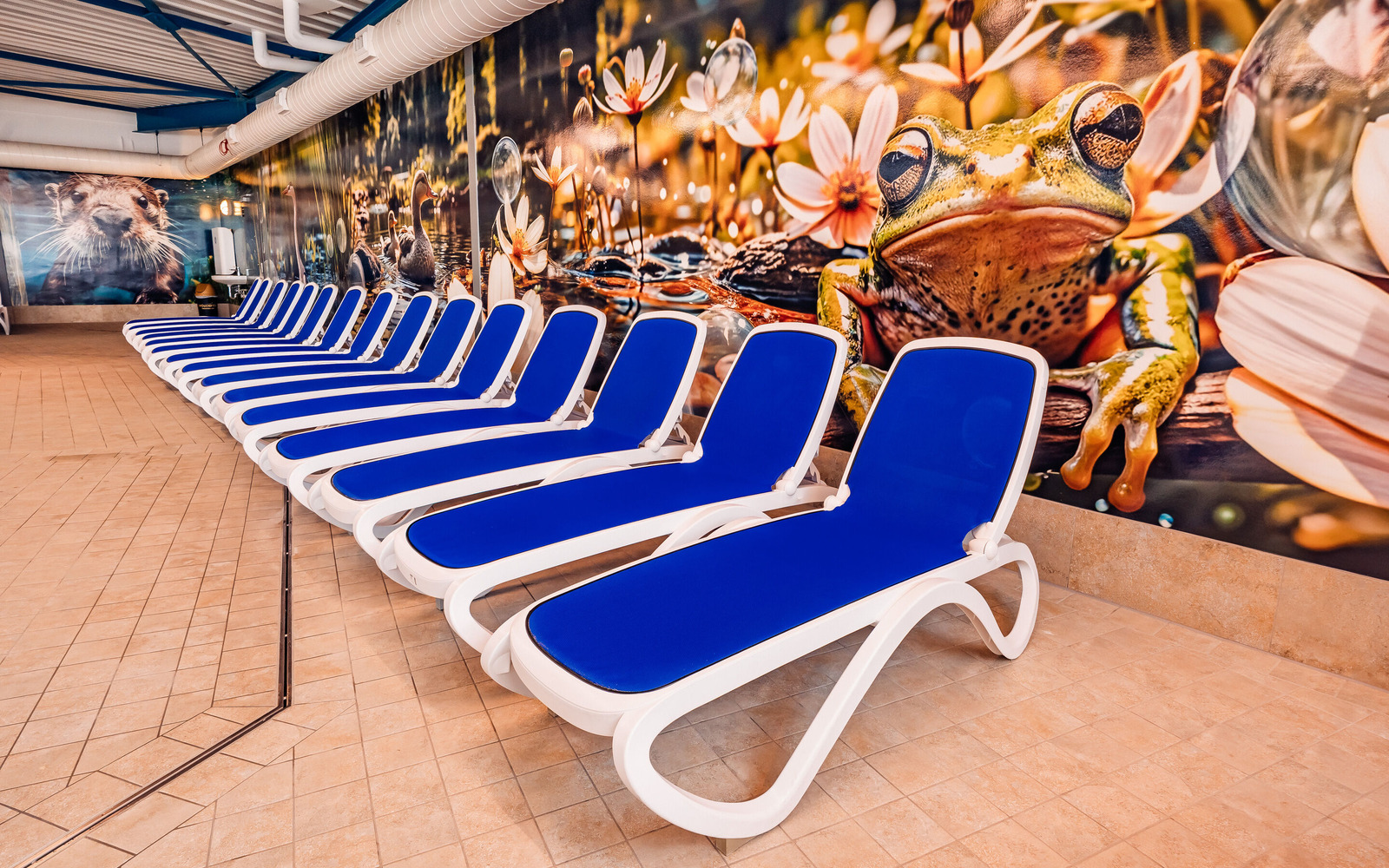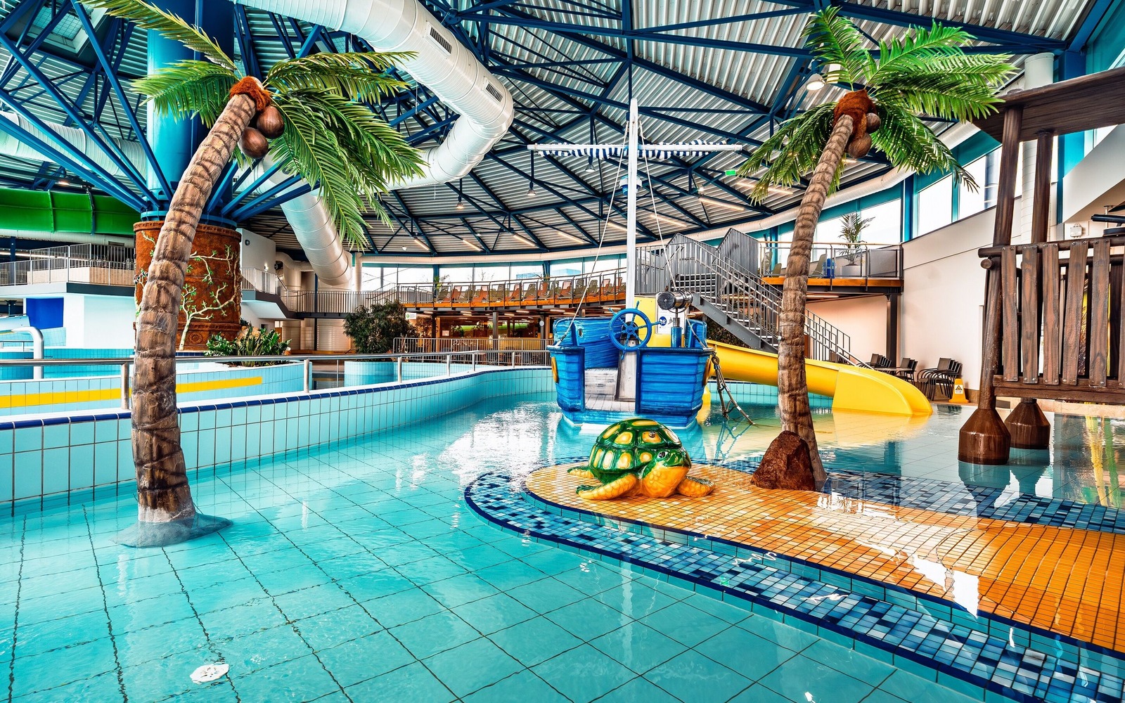 Indulge in water fun for the whole family. The large indoor and outdoor areas invite young and old to explore. Starting on the sun deck, from where you can get a good overview of almost everything. The "Green Monster" – the super-fast water slide with integrated timing system – guarantees 60 meters of sliding fun for the whole family! A highlight is the wave with the giant tires, which are sent through the flow channel every 20 minutes. Those who like daring will love the 3m diving platform and can test their skills on the new AqueCross! A retreat for parents with small children is the "Pirate's Nest," with a pleasantly warm 32°C water temperature, plenty of space to lie down, and a child-friendly environment. In the newly designed outdoor area, in addition to action-packed areas such as beach soccer, volleyball, a fitness trail, and a sports terrace, there is also a children's playground, barefoot path, and a lounge area. You are also welcome to use the sauna area.