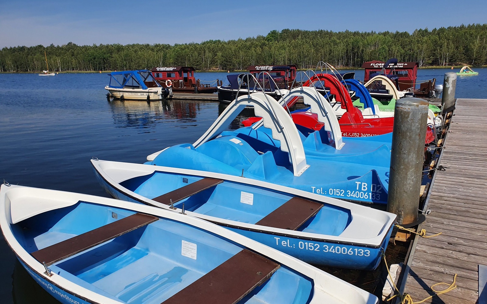 Guests can head off on days out on the lake and explore Lake Senftenberger See and also the Lusatian Lake District from the boat rental centre at the Lake Senftenberger See Hafencamp marina camp in Großkoschen. Rowing boats, pedal boats, kayaks, Canadian canoes and Stand-Up-Paddling (SUP) boards are available to rent, all of which are safe for novices to take out. Equipped with a life jacket, adults can even embark on a tour across the lake with children without any worries. Expeditours also rents sailing boats and has its own sailing school. The company also organises taster and basic certificate courses. Training courses are also offered for official inland and sea sports boat licences (sailing and motor-powered).